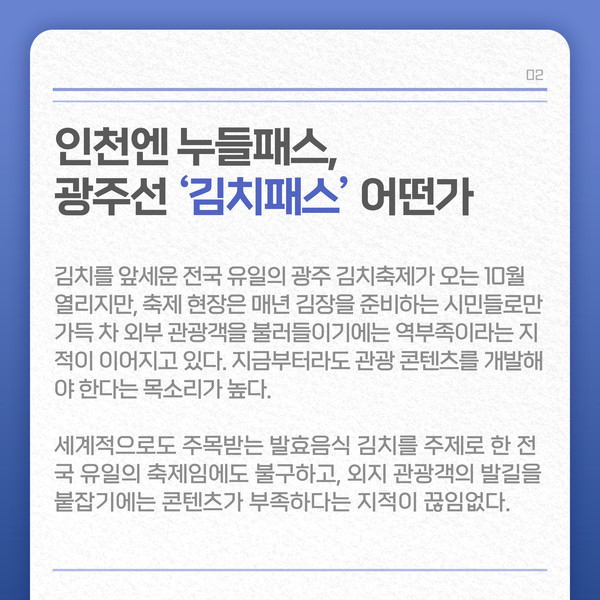 인천엔 누들패스, 광주선 ‘김치패스’ 어떤가