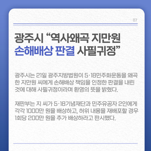 광주시 “역사왜곡 지만원 손해배상 판결 사필귀정”