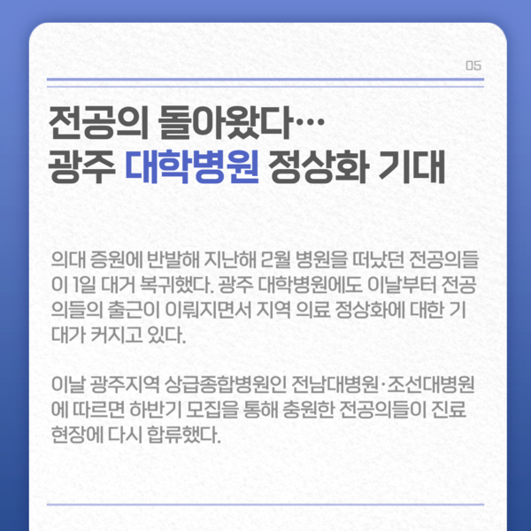 전공의 돌아왔다...광주 대학병원 정상화 기대
