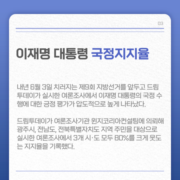 [2026지방선거 드림투데이 여론조사] 이재명 대통령 국정지지율