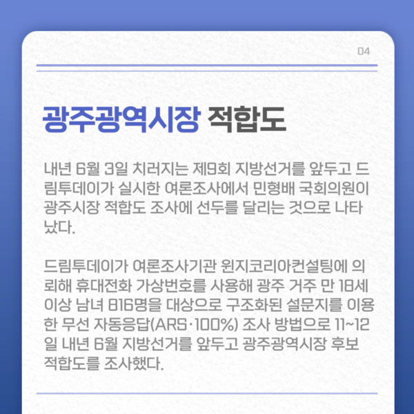 [2026지방선거 드림투데이 여론조사] 광주광역시장 적합도