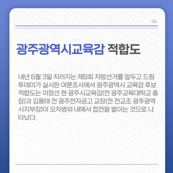 [2026지방선거 드림투데이 여론조사] 광주광역시교육감 적합도