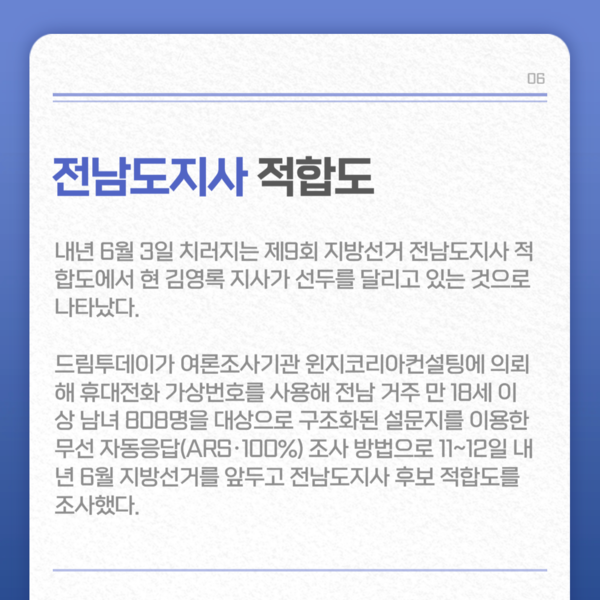[2026지방선거 드림투데이 여론조사] 전남도지사 적합도