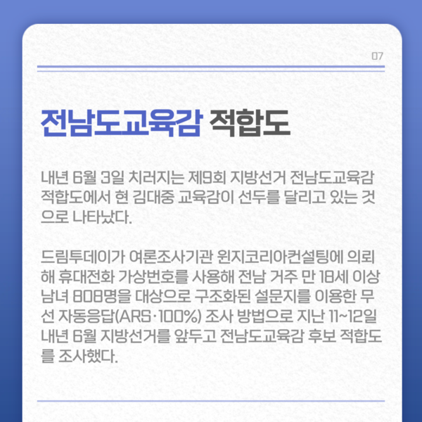 [2026지방선거 드림투데이 여론조사] 전남도교육감 적합도
