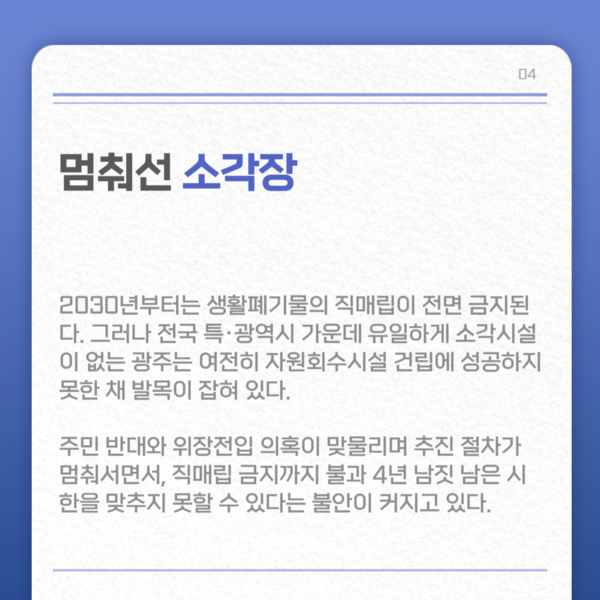[지속 불가능 경고장, 광주 폐기물 리포트] (5) 멈춰선 소각장