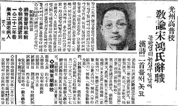 이같은 상황에서 송홍의 존재는 무척이나 소중하다. 그 역시 광주학생운동에 적극 참여한 것은 아니지만 학생들의 재판일자에 맞춰 사직서를 던지고 교단을 떠남으로써 수난에 동참했다. 그래서 “광주학생운동의 사표(師表)”라 불릴 만하다.