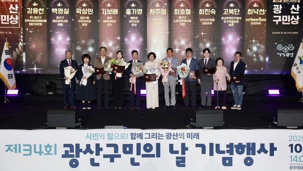 이날 기념식에서는 재난 현장과 수해 복구 등에서 헌신한 자원봉사자 대표들이 ‘광산구민 헌장’을 낭독하며 행사의 의미를 더했다. 이어 구정 발전과 지역사회 공헌에 앞장선 주민들에게 공로상과 구민상이 수여됐다.