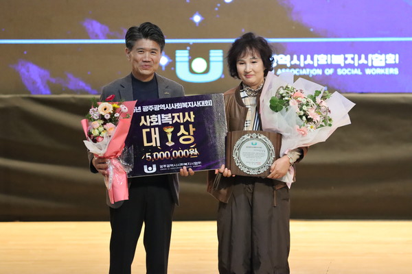 광주발달장애인주간보호시설 노미향 원장이 10월 30일(목) 광주대학교 호심관 대강당에서 열린 2025 광주광역시사회복지사대회 ‘Bravo My Life’에서 제4회 광주사회복지사대상을 수상했다.