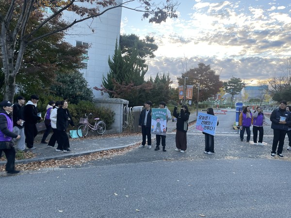 광산구청소년수련관(관장 김신영)은 13일(목) 오전 7시, 첨단고등학교 정문 앞에서 2025학년도 대학수학능력시험을 치르는 수험생들을 응원하기 위한 ‘수능 아웃리치’를 진행하였다.