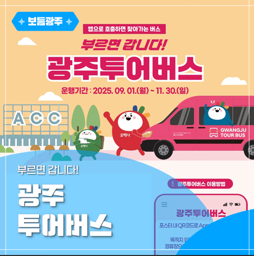 광주광역시는 관광객의 이동 편의를 위해 한시적으로 운영 중인 ‘광주투어버스(수요응답형 DRT: Demand Responsive Transport)’ 서비스를 적극 안내하고 있다.
