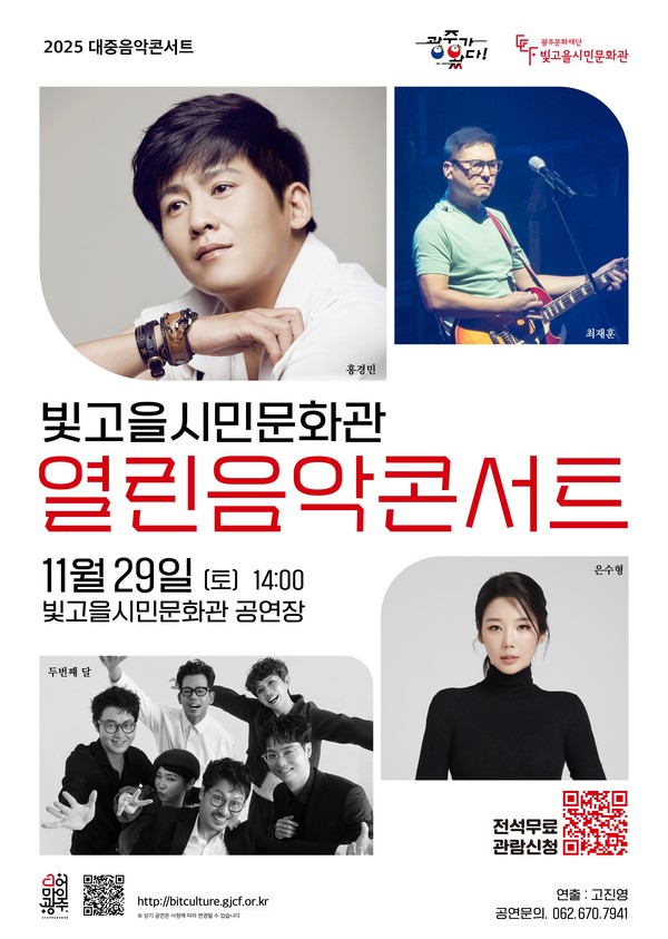 광주문화재단은 오는 11월 29일(토) 빛고을시민문화관 공연장에서 ‘2025 대중음악콘서트’ 2회차를 전석 무료로 개최한다고 밝혔다.