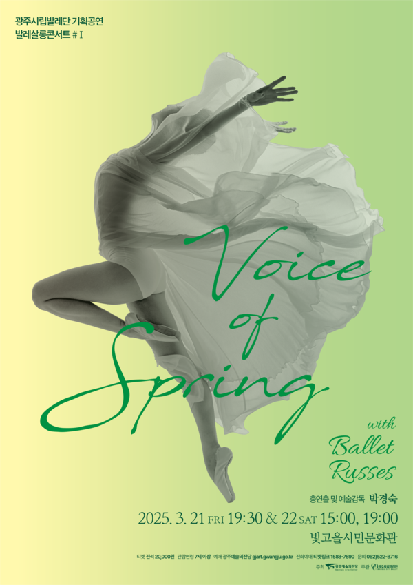 광주시립발레단은 오는 3월 21일부터 22일까지 (21일 오후 7시 30분 / 22일 오후 3시, 7시) 빛고을 시민문화관에서 해설이 있는 발레 ‘Voice of Spring’을 선보인다.