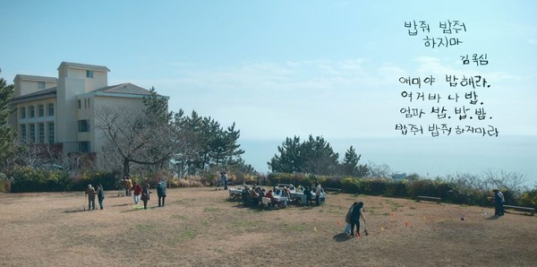 1회 첫 장면 속 노인이 된 애순이 머무는 요양원으로 그려진 곳은 전남 여수 청심국제해양청소년수련원이다. 푸른 바다와 잔디밭이 어우러지는 풍경 속 하얗게 머리가 센 애순의 모습과 시를 쓰지 못하고 스케치북에 칠하는 파란 크레파스가 극의 첫 인상을 남겼다.