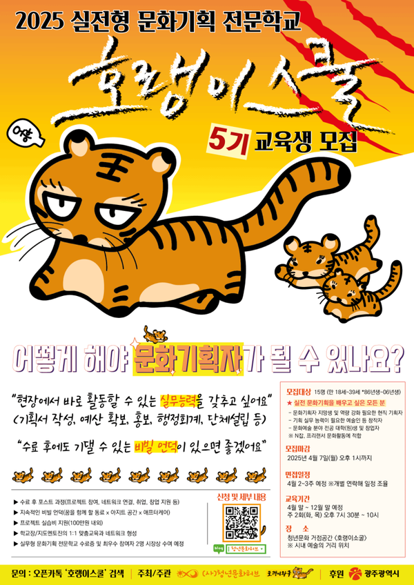 예비 문화기획자들을 위한 실전형 문화기획 전문학교 ‘호랭이스쿨’이 올해 5기를 맞아 오는 4월 7일까지 교육생을 모집한다.
