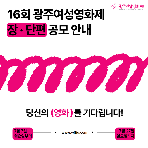 16회 광주여성영화제가 오는 7월 27일(일) 자정까지 귄 장편 및 단편 부문 작품을 공모한다.