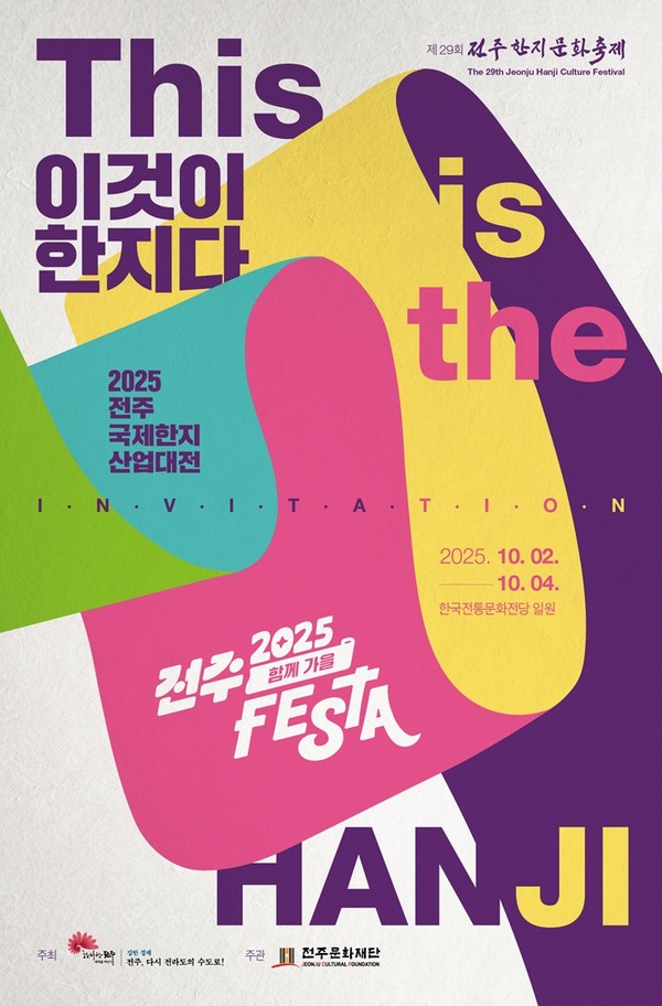 (재)전주문화재단(이사장 우범기)은 10월 2일부터 4일까지 한국전통문화전당 일원에서 ‘2025 전주국제한지산업대전(제29회 전주한지문화축제)’의 막을 올린다. 올해 주제는 ‘이것이 한지다’.