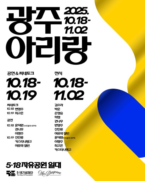 1980년 5월, 광주가 남긴 마음과 태도를 오늘의 목소리로 잇는 예술축제 ‘2025 광주아리랑’이 오는 18일부터 11월 2일까지 5·18자유공원 일대에서 열린다.